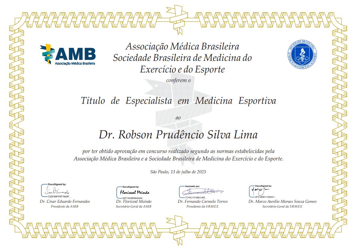 - Registro de Especialista em Medicina Esportiva - Conselho Regional de Medicina